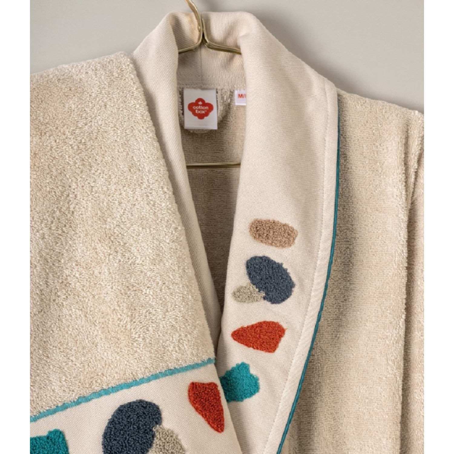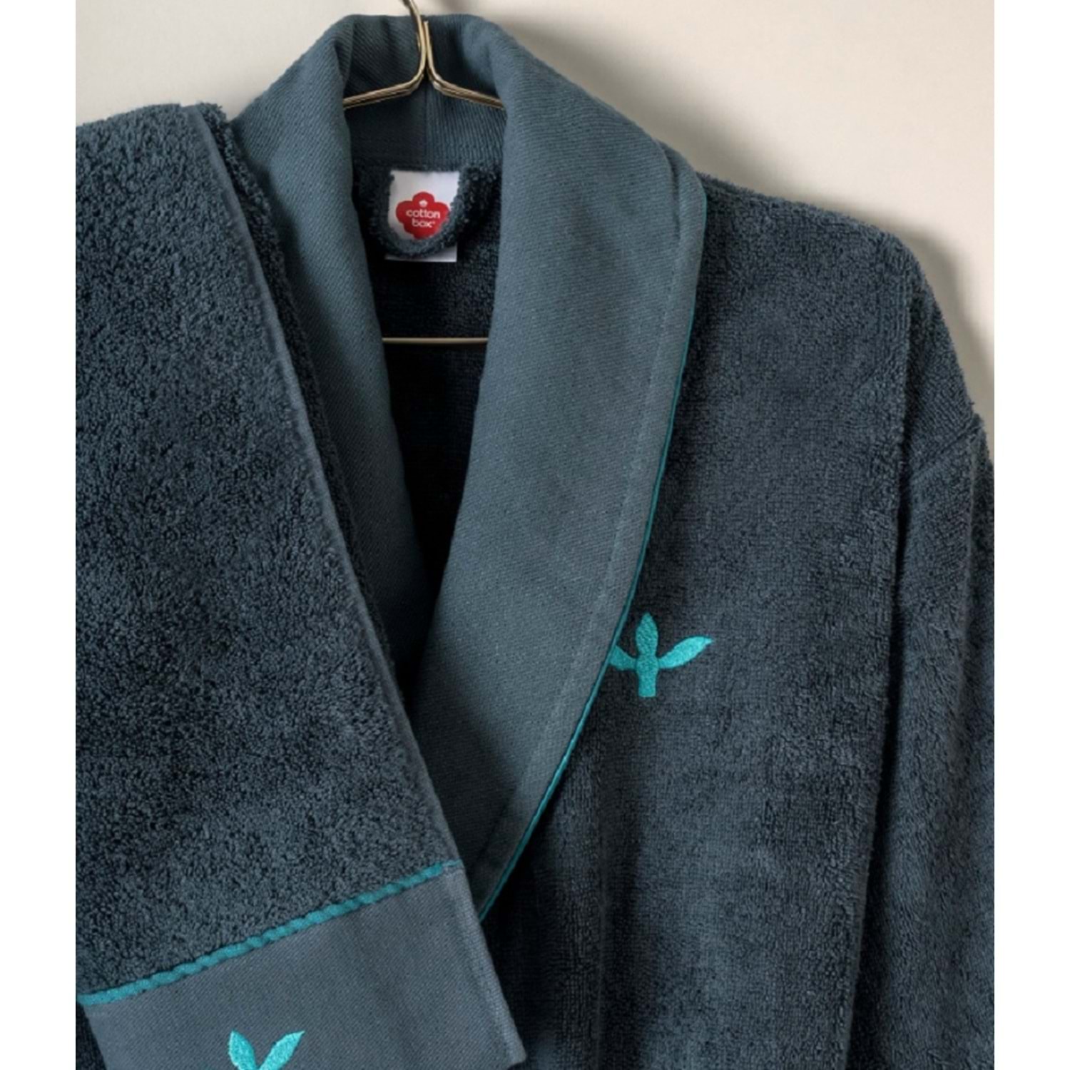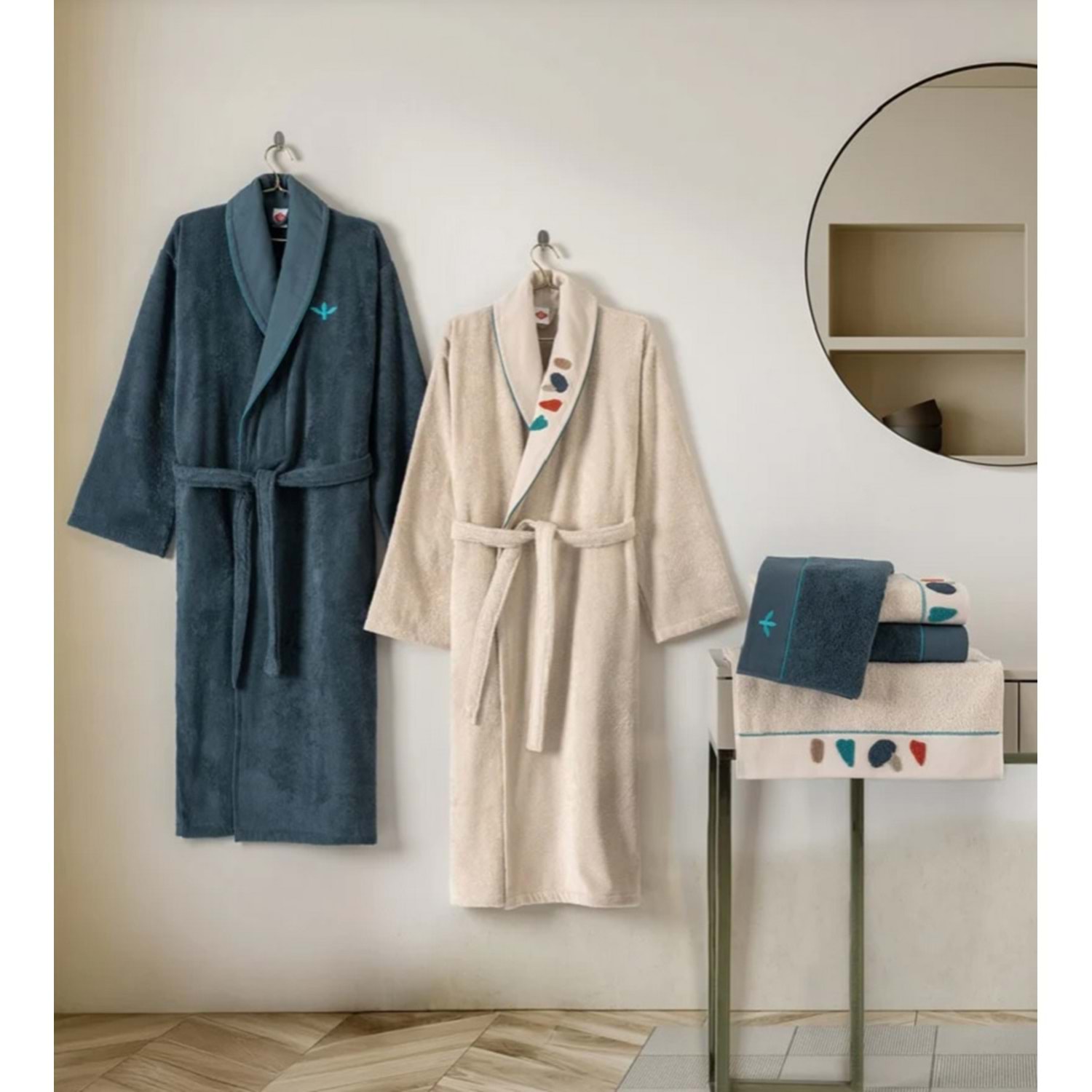 Cotton Box Puff Nakışlı Gaja Bej-Petrol Aile Bornoz Takımı