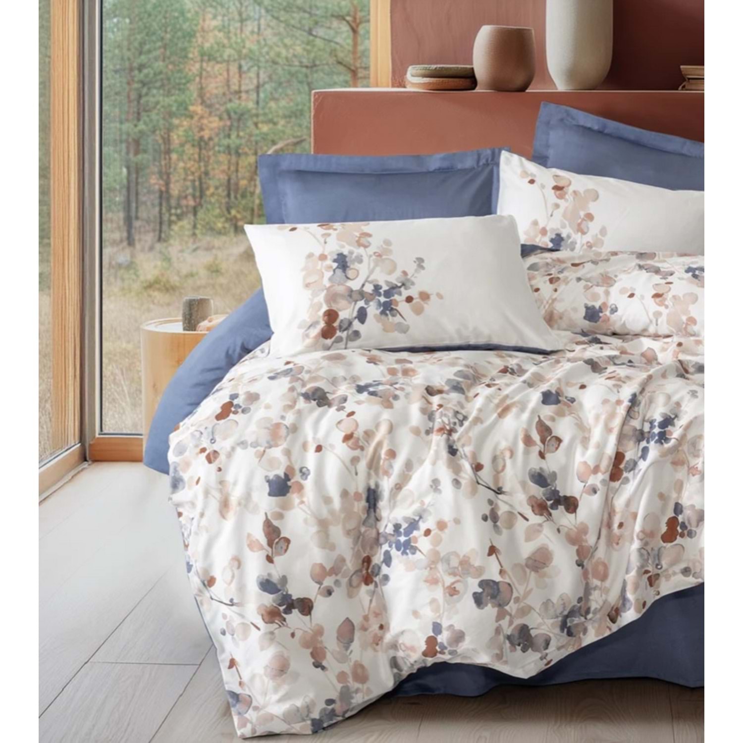 Cotton Box Saten Çift Kişilik Nevresim Takımı Nebulae İndigo