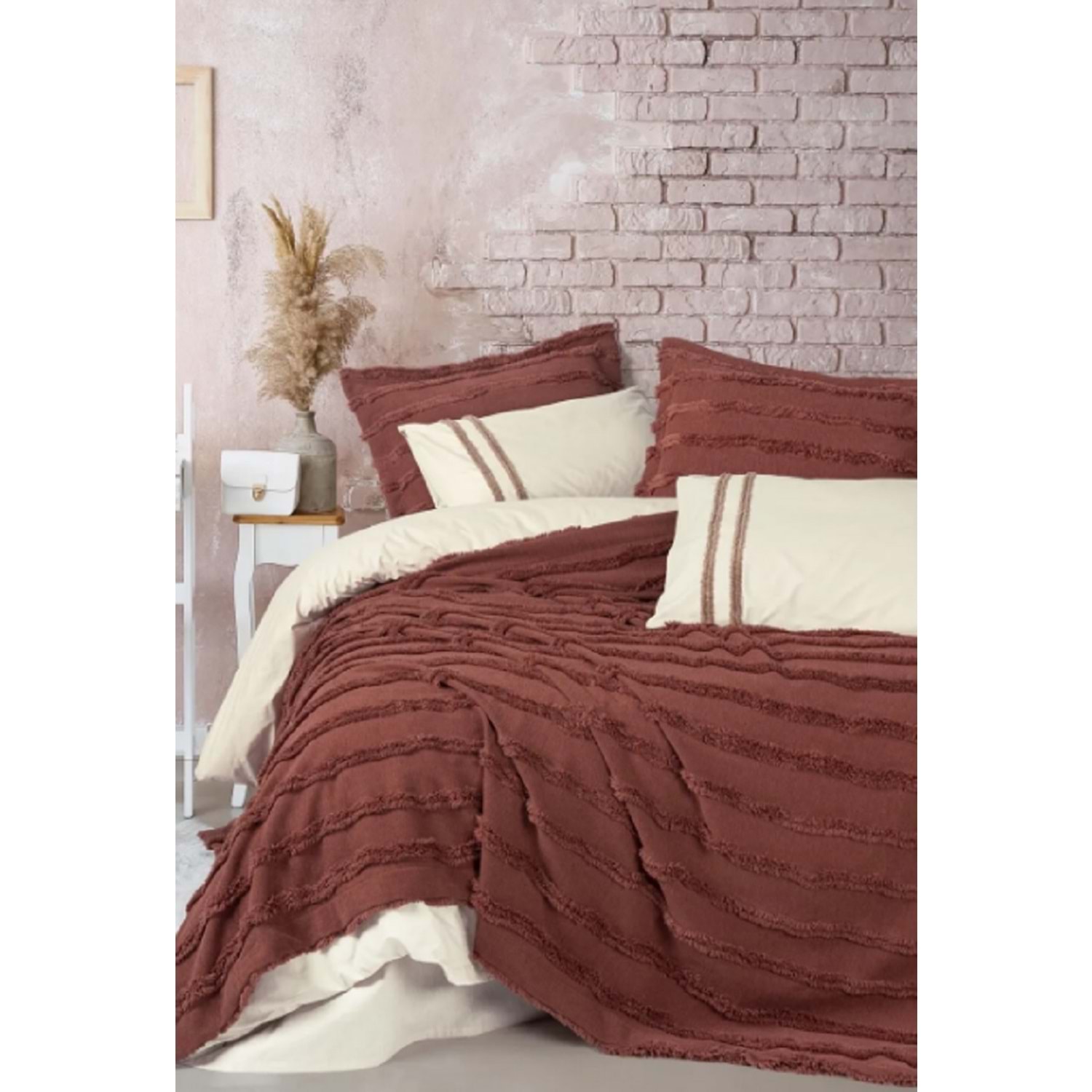 Cottonbox Limi Rolf Tarçın Yatak Örtülü Çift Kişilik Nevresim Takımı