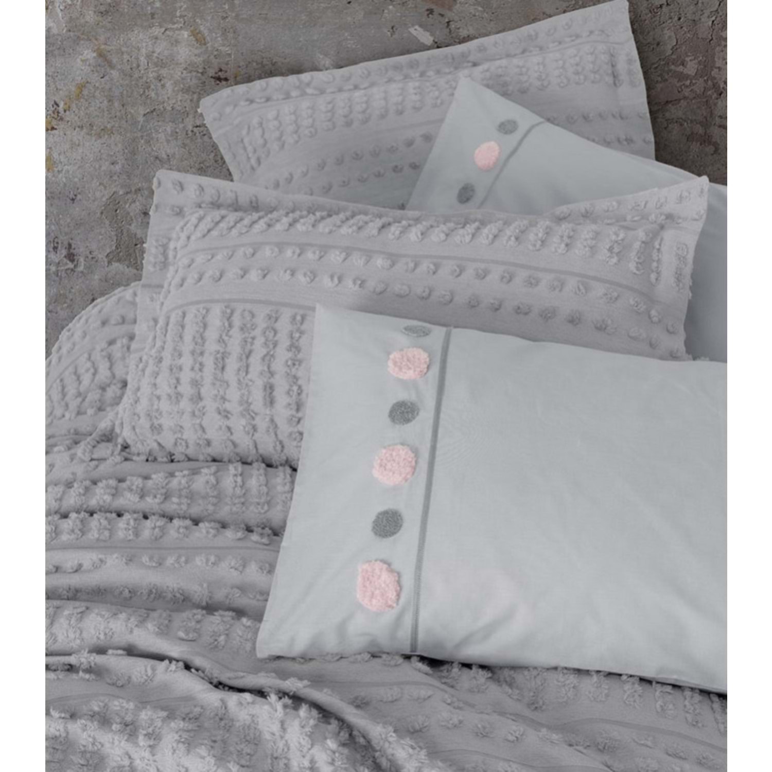 Cotton box Limi Çift Kişilik Yatak Örtülü Nevresim Takımı Siva Gri