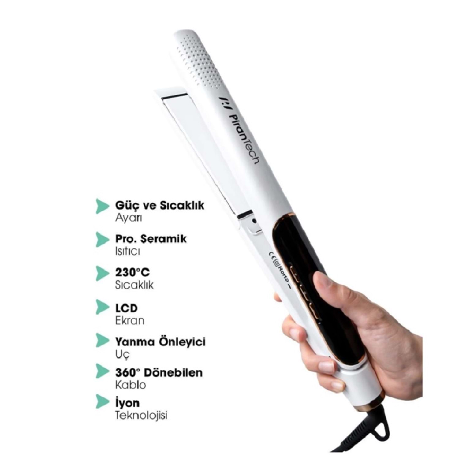 Pirantech TA-2638, profesyonel düzeyde saç bakımını evinize getiriyor 230 derece’ye kadar çıkan ayarlanabilir sıcaklık ve seramik plakaları sayesinde her saç tipine uygun, güvenli ve etkili bir kullanım sunar. İyon teknolojisi ile saçlardaki elektriklenmeyi önlerken, doğal parlaklık kazandırır. LCD ekranı, yanma önleyici ucu ve 360° dönebilen kablosu ile zahmetsiz ve güvenli saç şekillendirme deneyimi sağlar.