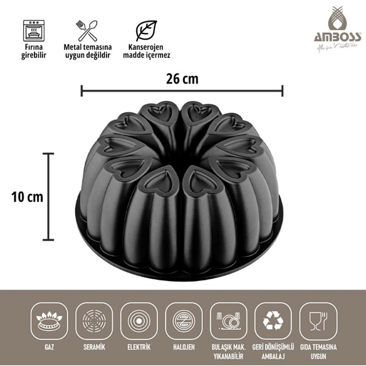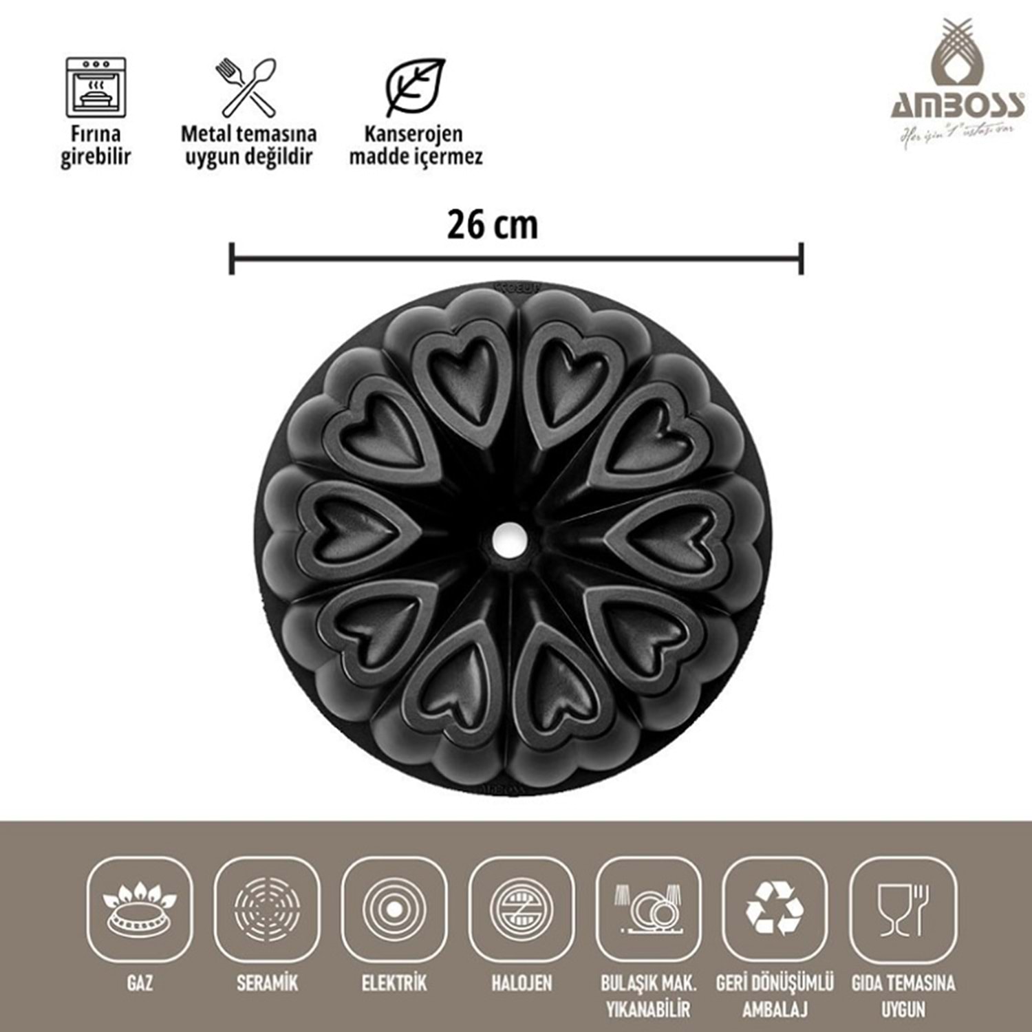 Amboss Ametist 26 Cm Döküm Kek Kalıbı Siyah AME-7708