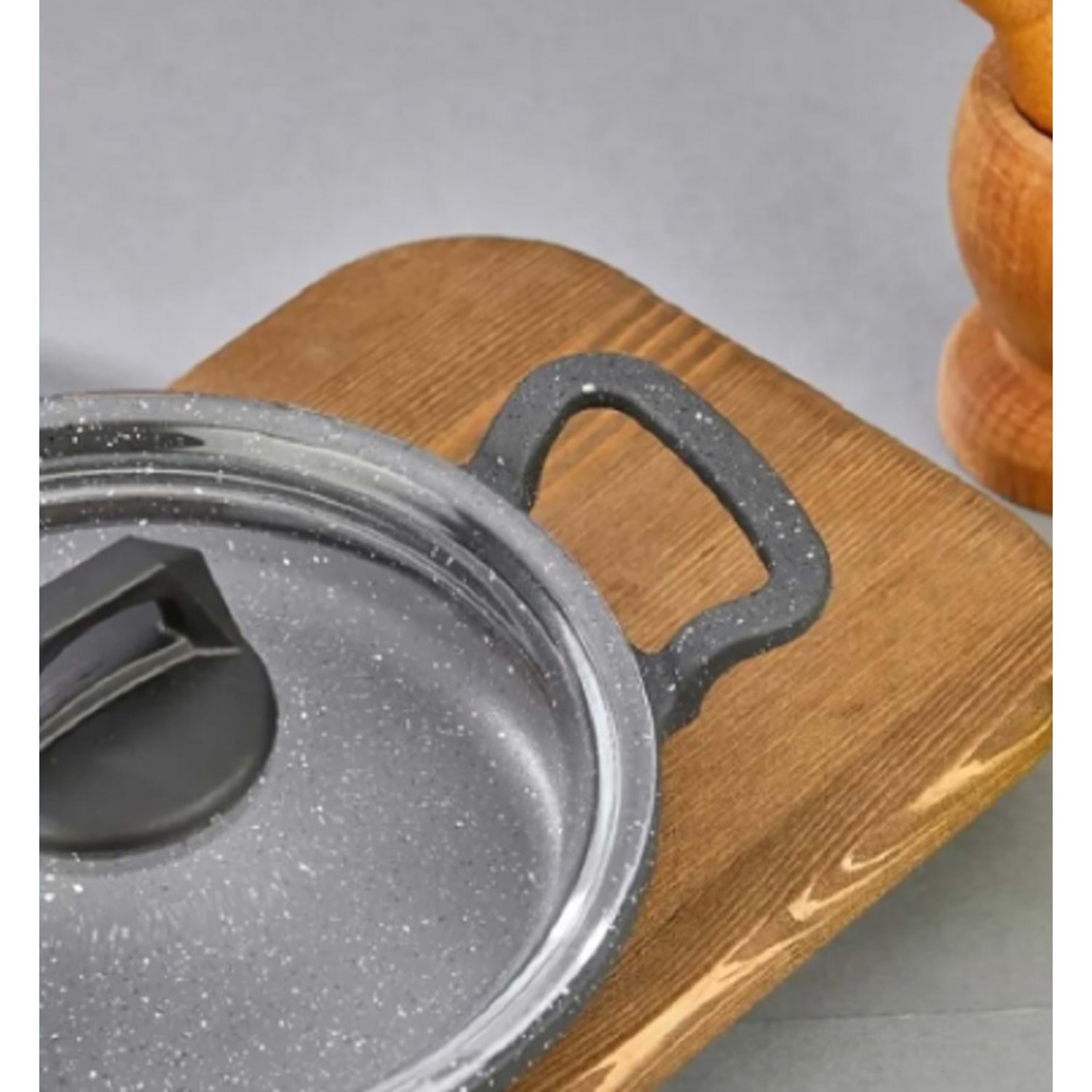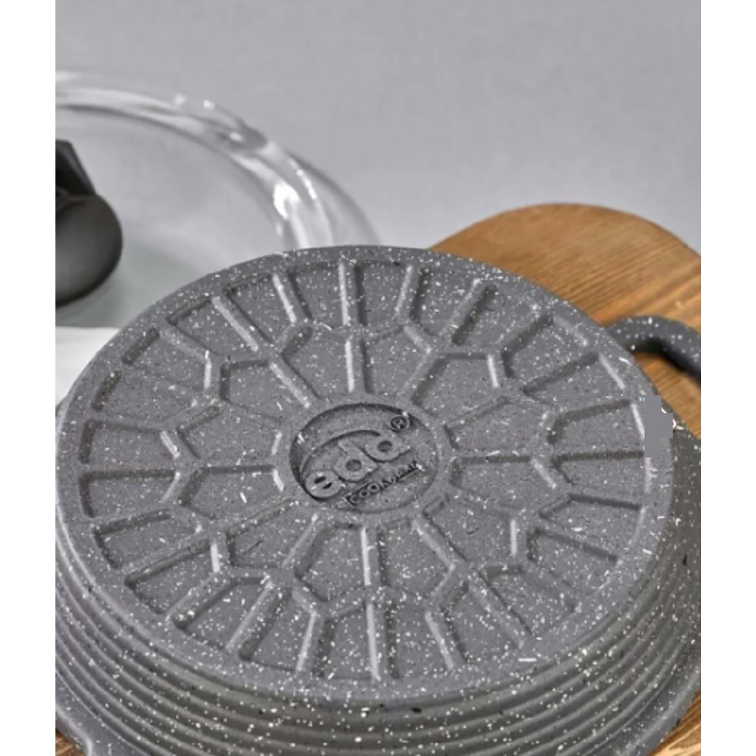 Eda ZK-905 Büyük Asya 3'lü Granit Sahan Seti Cam Kapaklı Döküm Gri