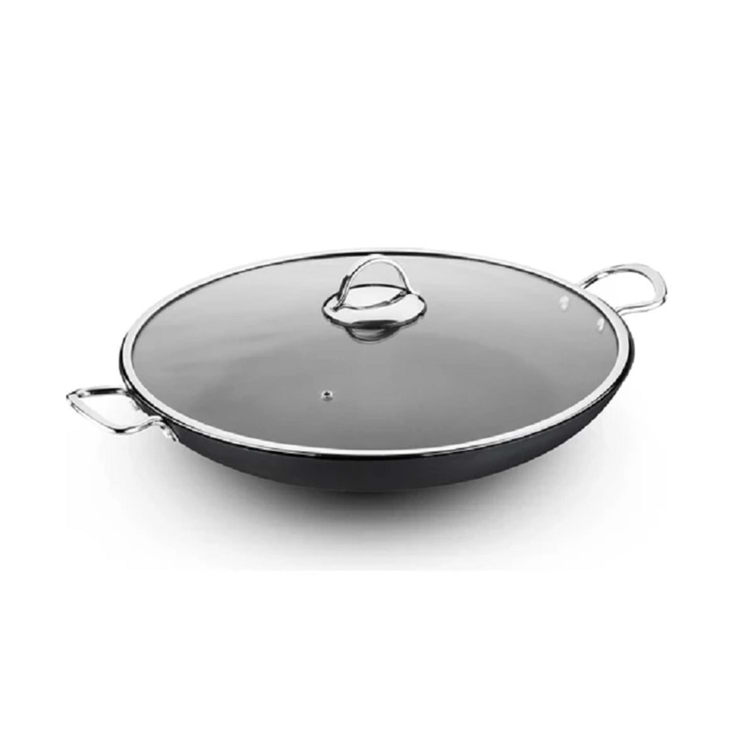 Paslanmaz çelik kulplar , sağlam perçinlerle monte edilmiştir; gevşemez, el yakmaz ve güvenli tutuş sağlar. Temperli cam kapağı , buhar çıkışlı tasarımıyla hem güvenli hem de şık bir kullanım sunar.