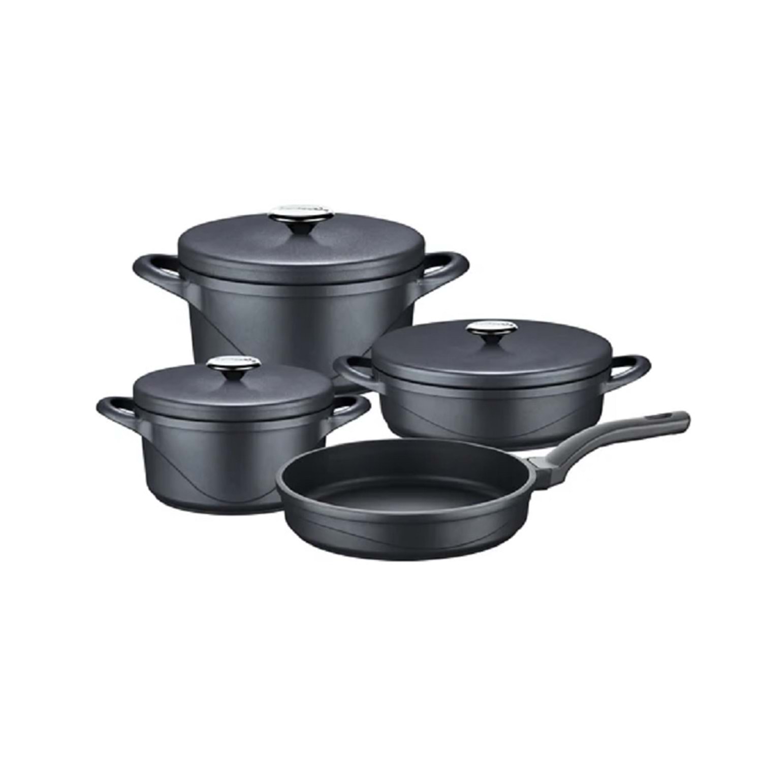 Şık ve Modern Tasarım:Antrasit gövde ve platin detaylar, mutfağınıza modern bir dokunuş katacak. Farklı ebatlardaki tencereler ve tavalar, her türlü yemeği kolaylıkla hazırlamanıza olanak tanır.