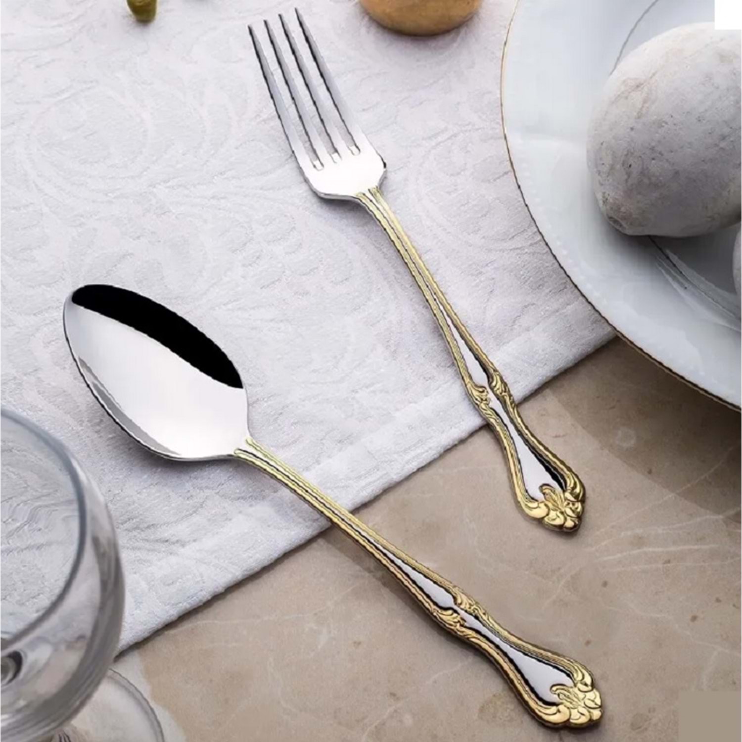 Nehir Lalezar Altın 30 Parça Kaşık Seti