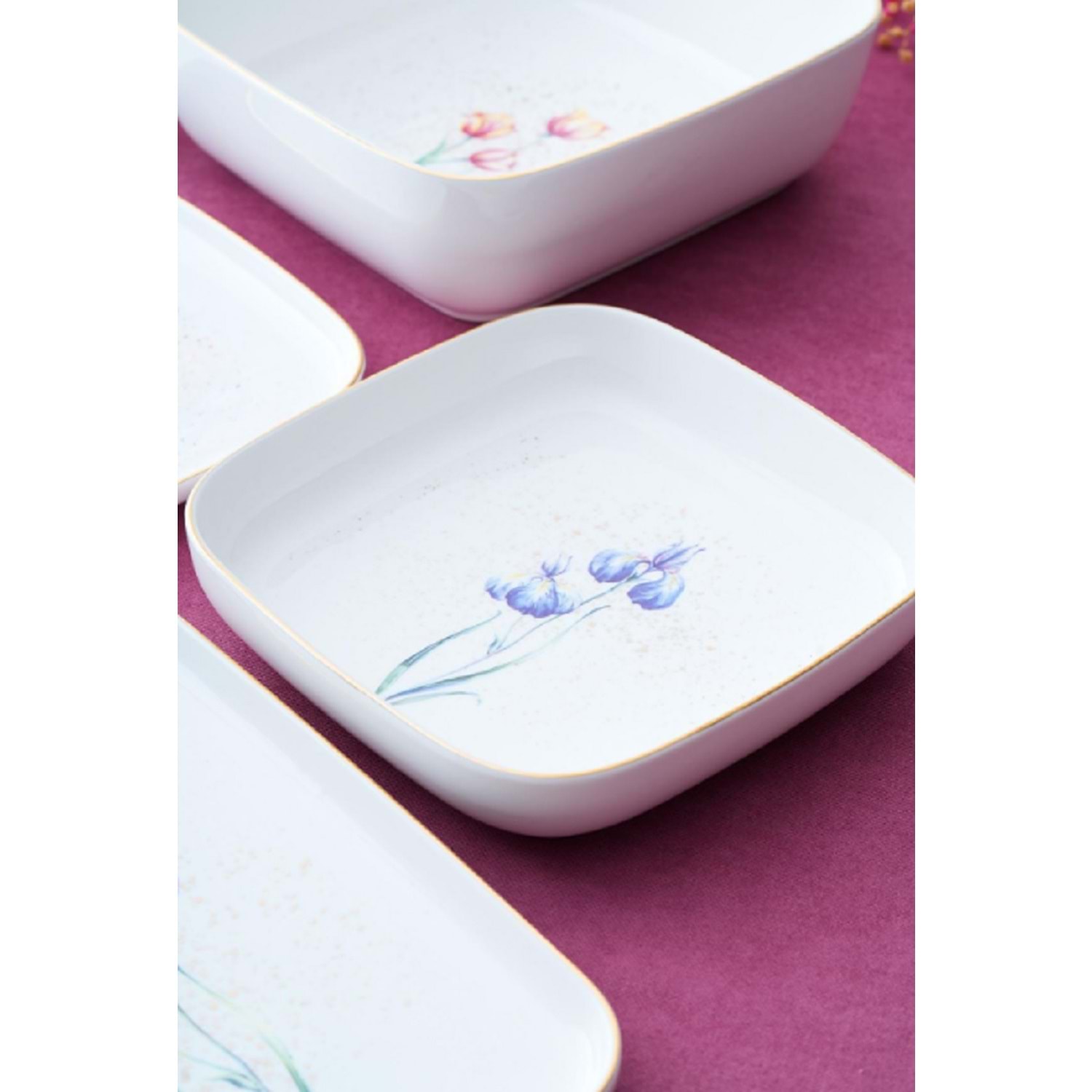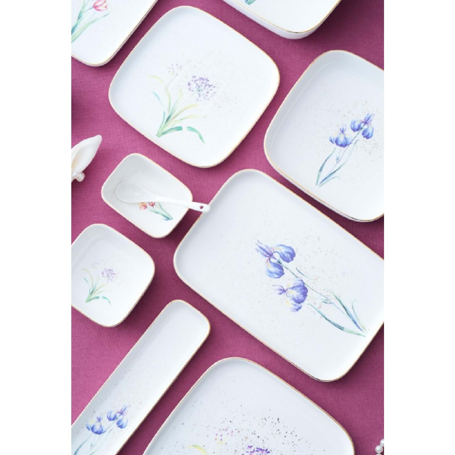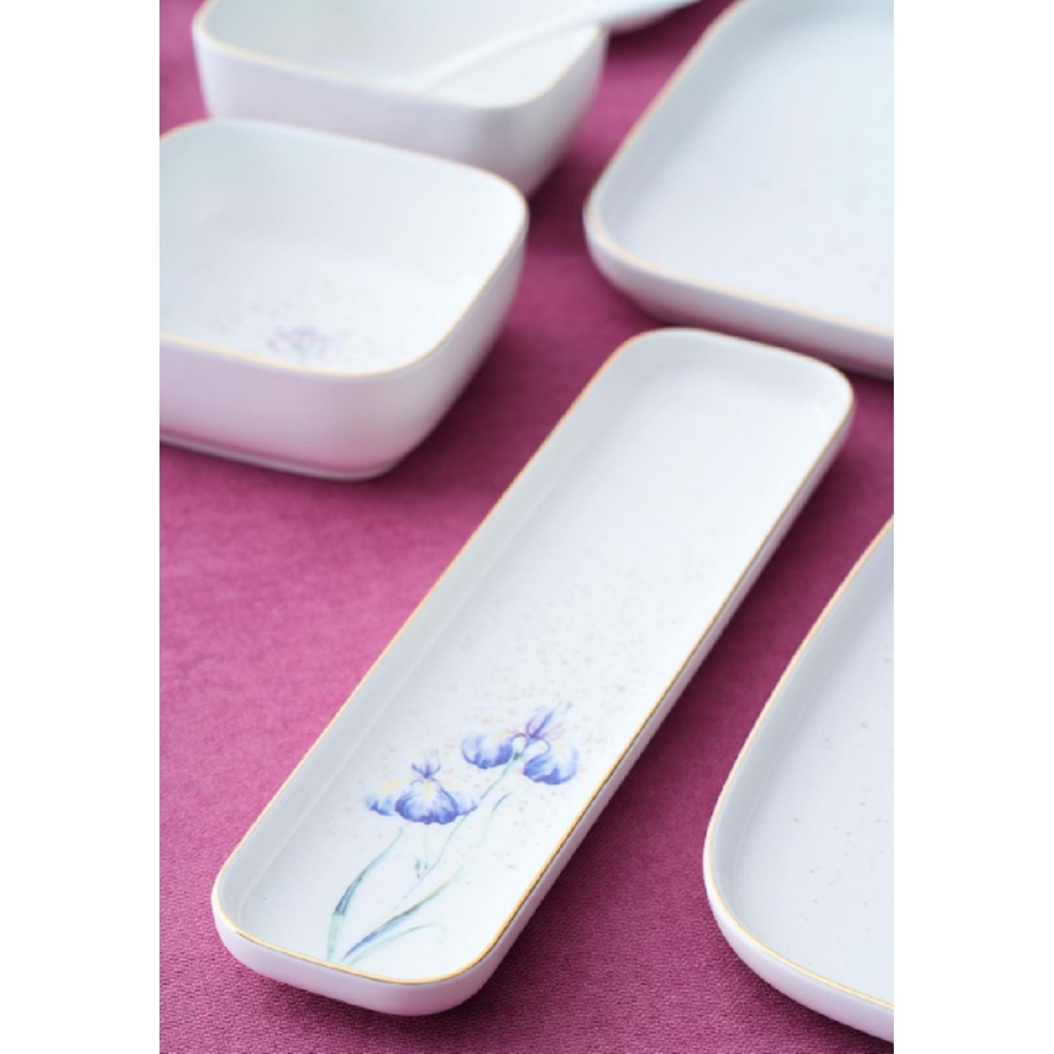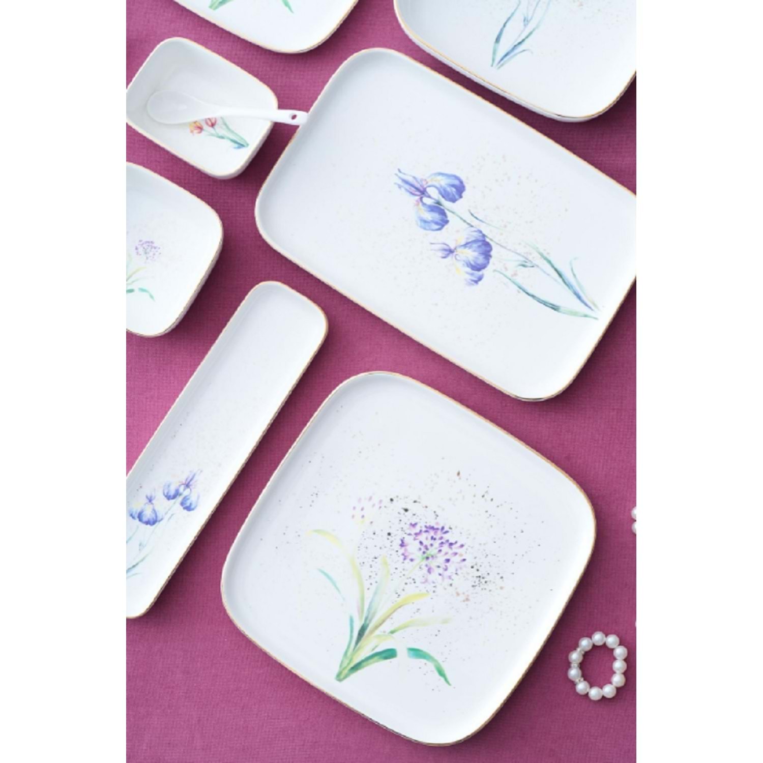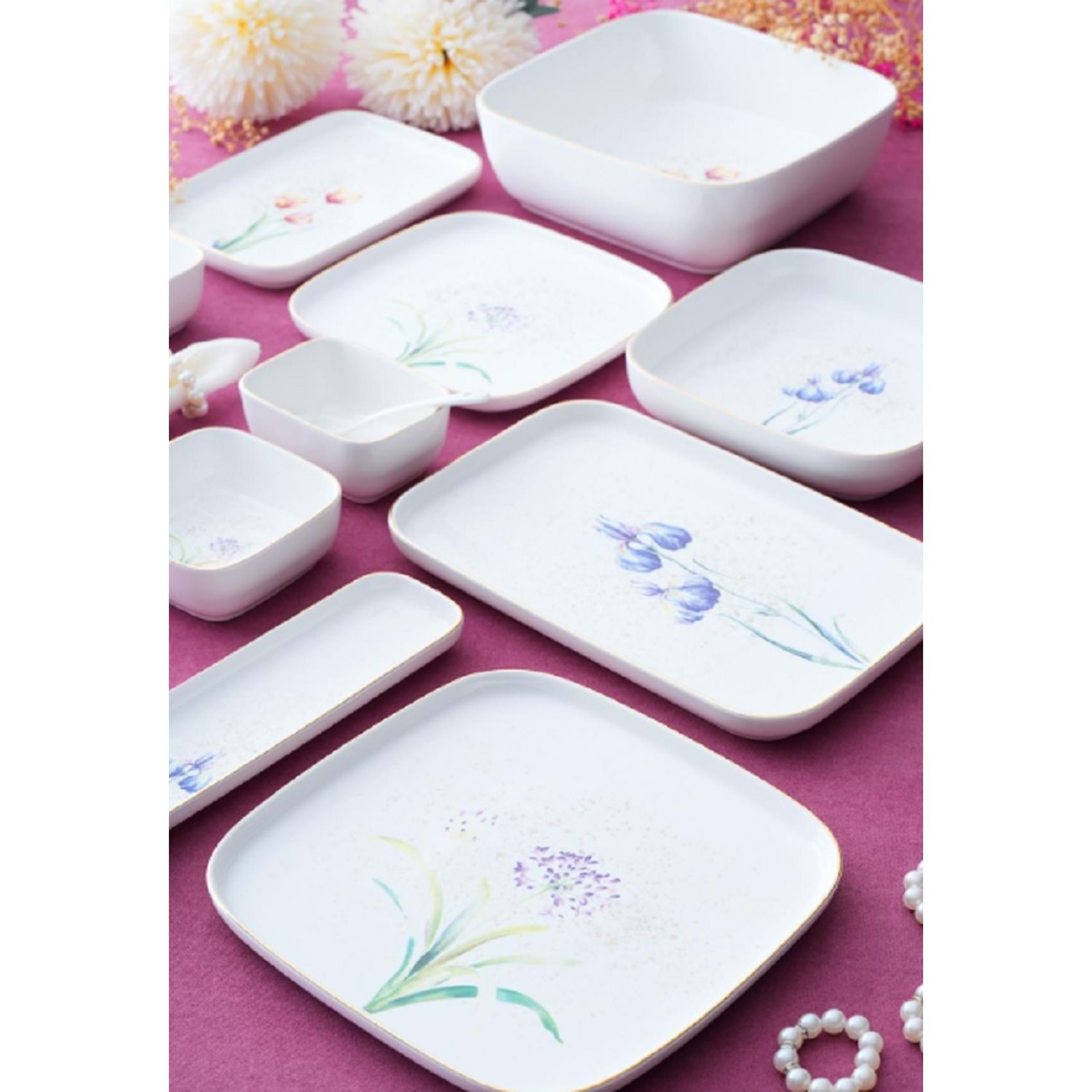 Kahvaltı tabaklarından çorba kaselerine, sosluklardan sunum tabaklarına kadar zengin içeriğiyle fonksiyonel; yumuşak geçişli çiçek detaylarıyla dekoratif bir takımdır.