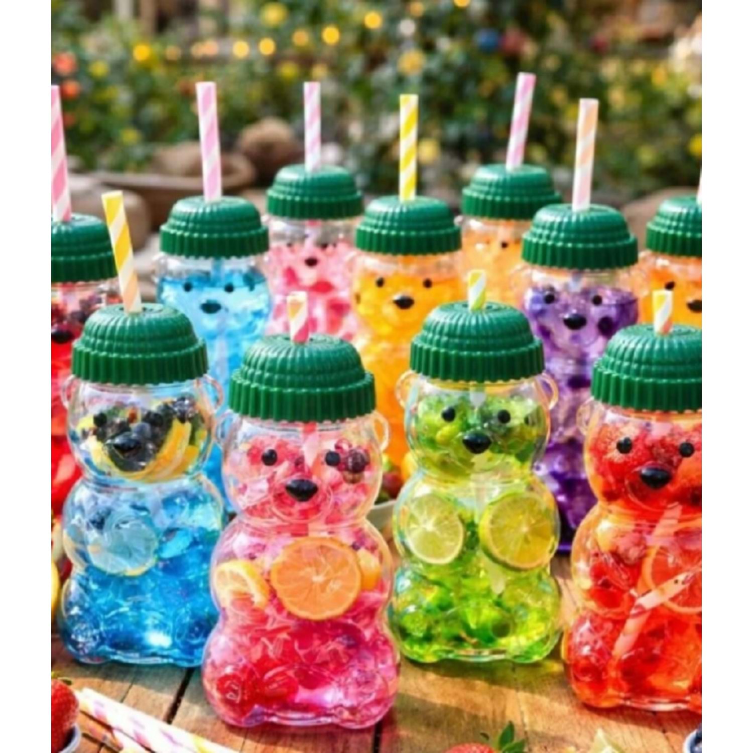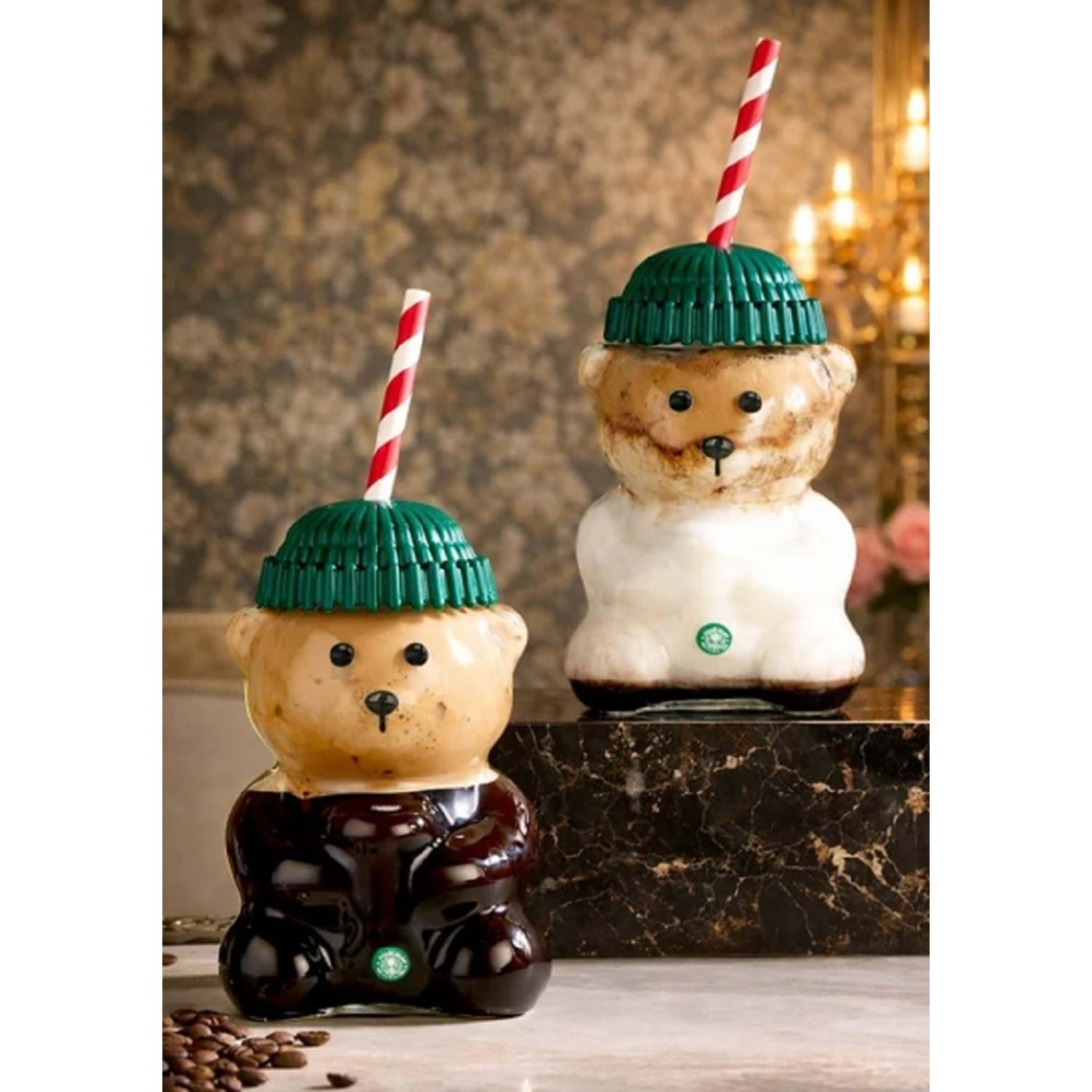 Karton pipetli ayıcıklı kahve bardağı.