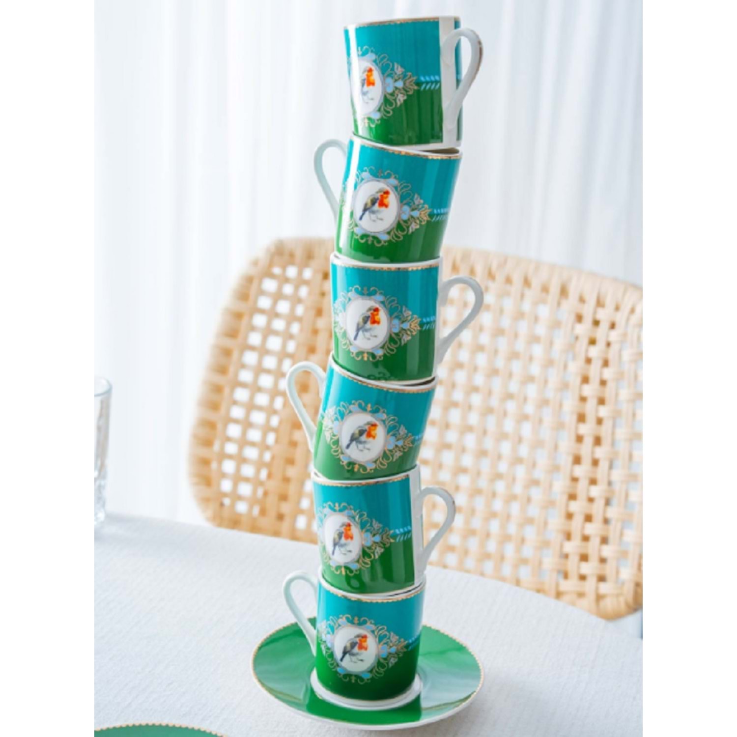 Acar Cybil 6 Kişilik Porselen Kahve Fincan Takımı Yeşil 8595