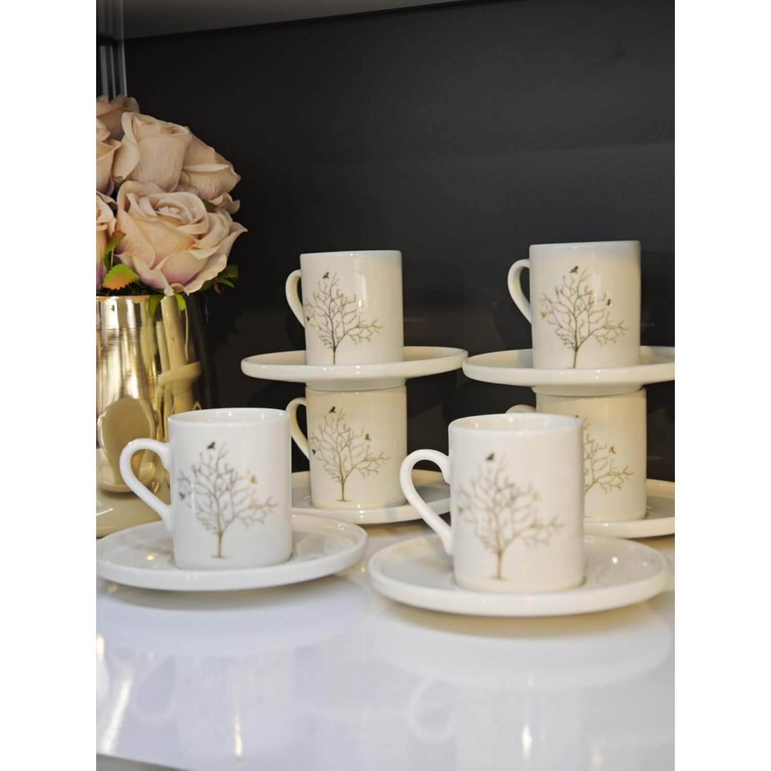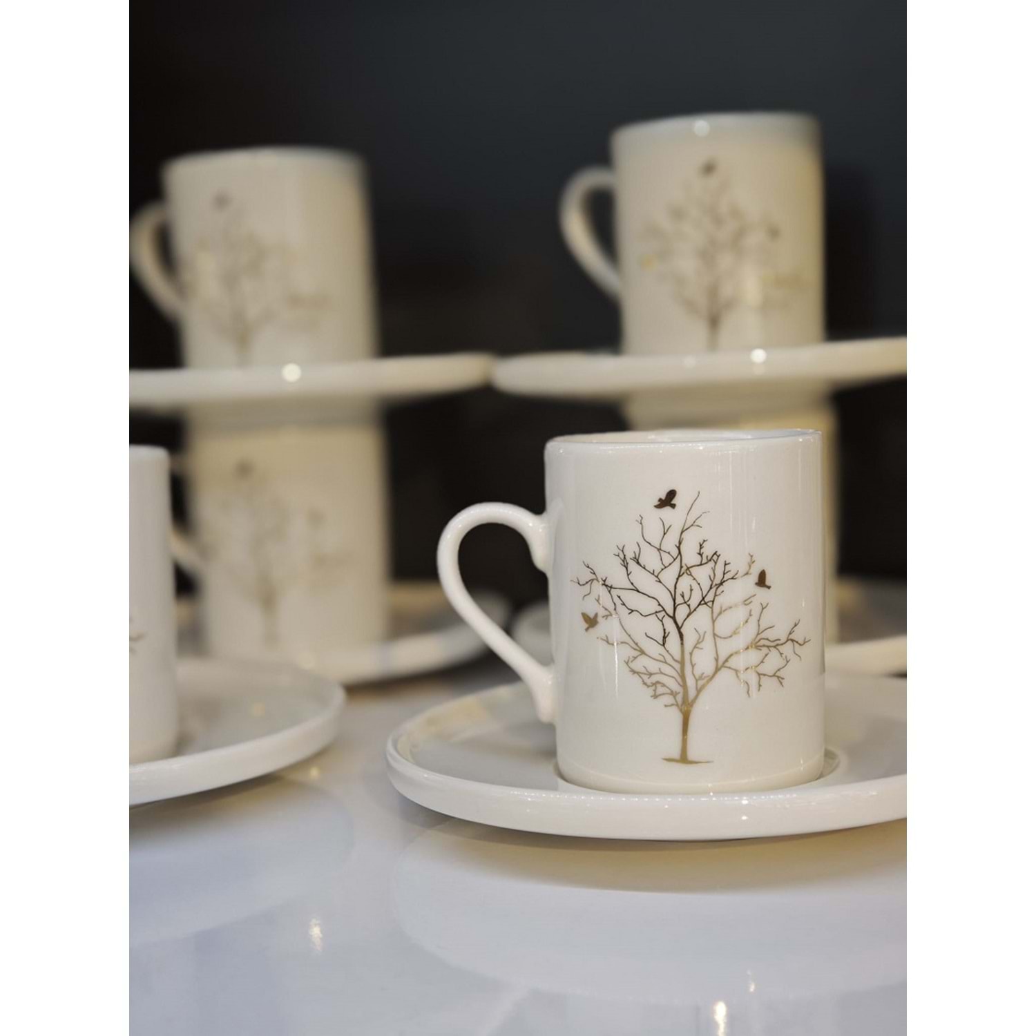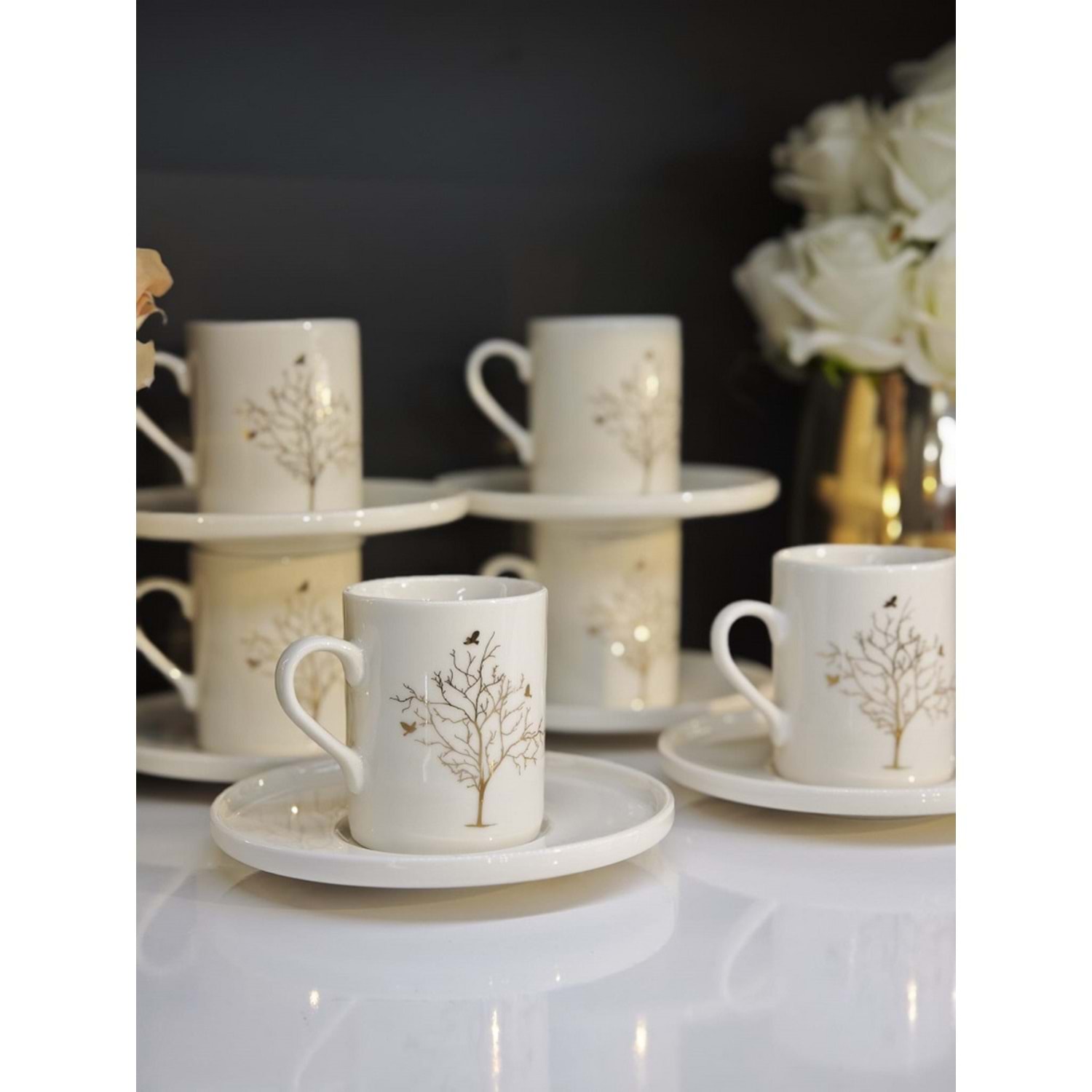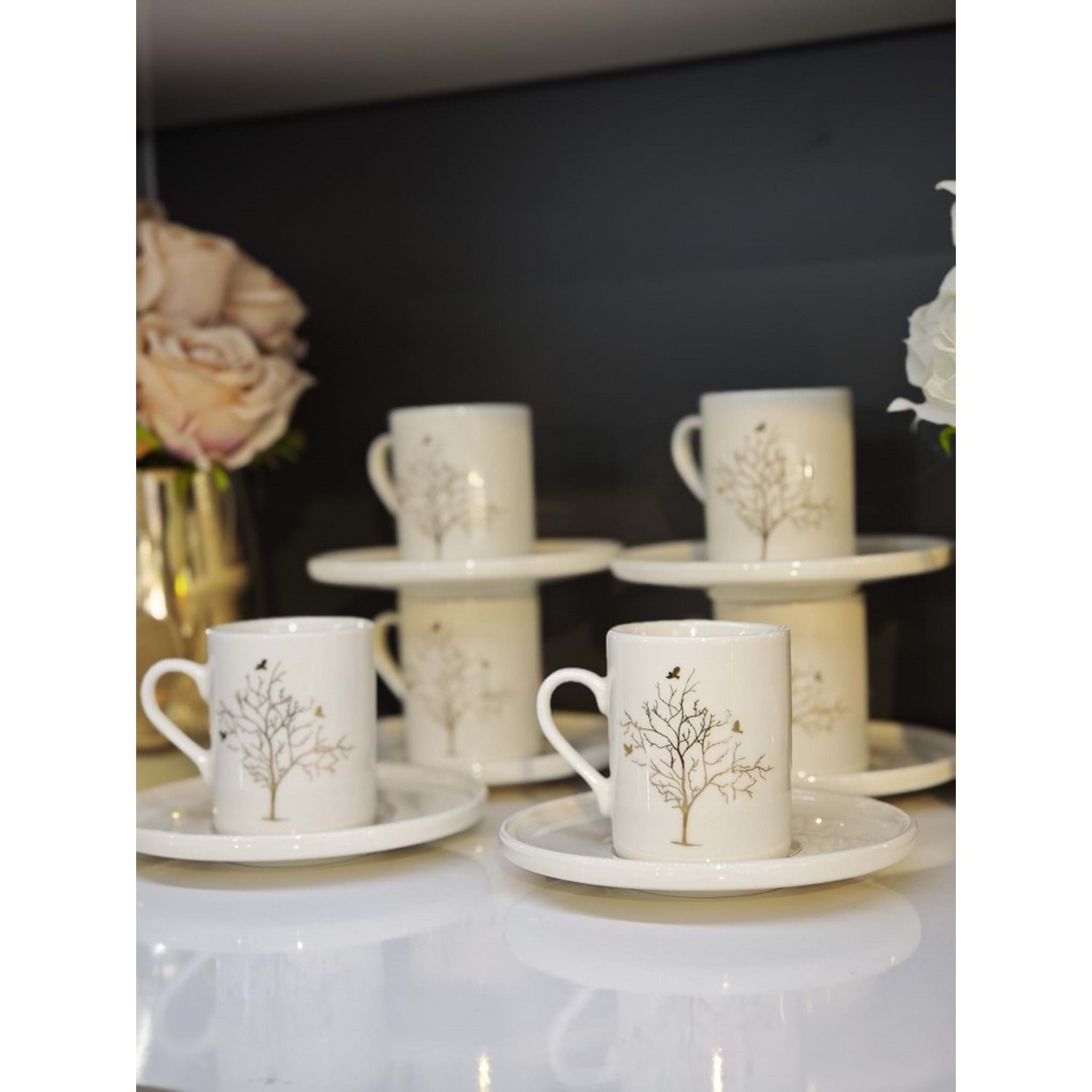 Shn Hayat Ağacı Desenli 6 Kişilik Kahve Fincan Takımı