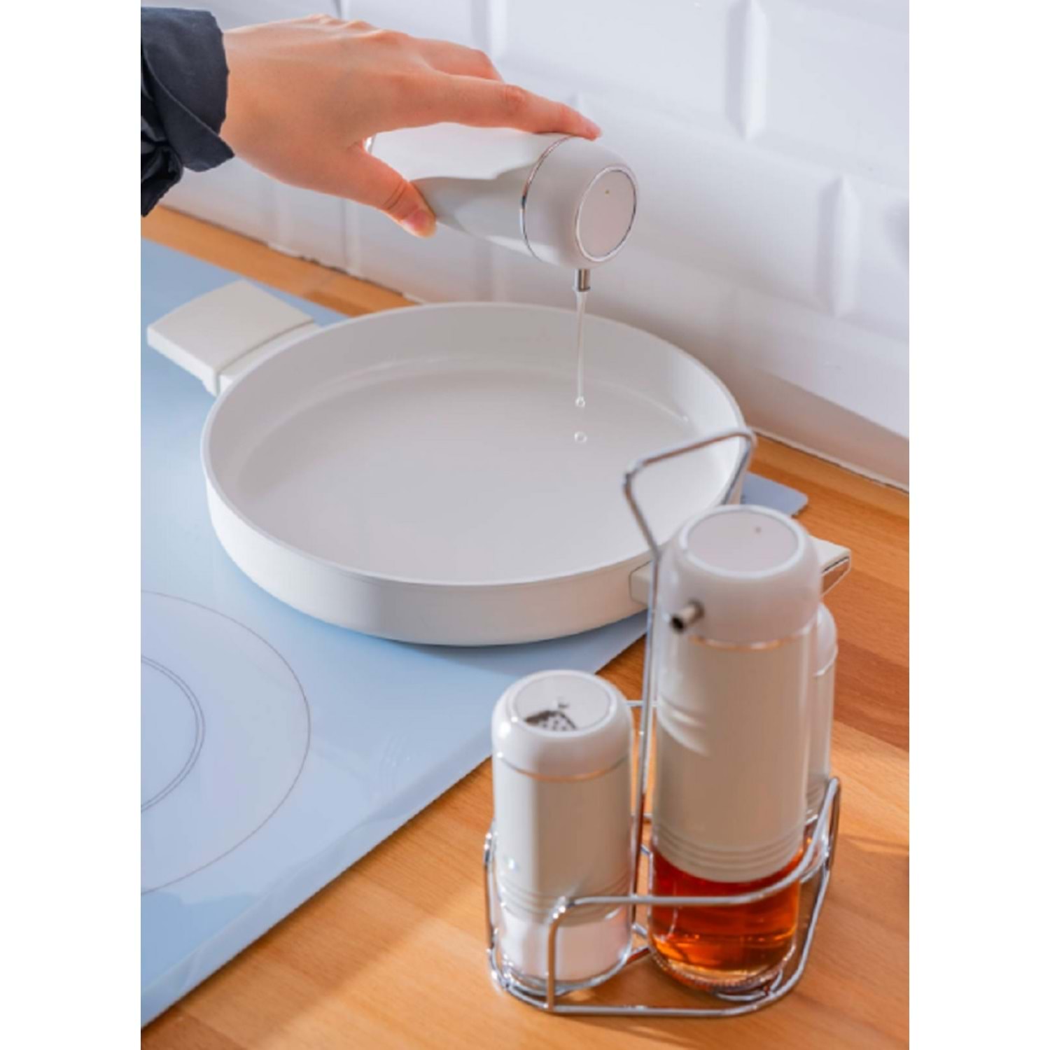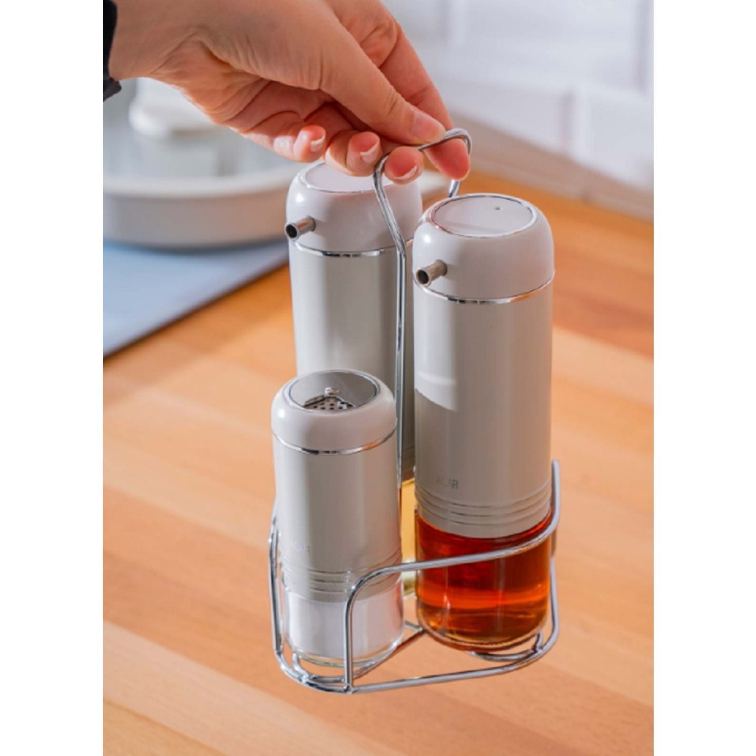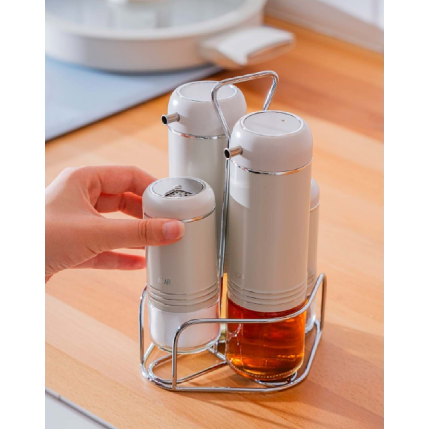 Mutfakta düzeni ve şıklığı bir arada sunar. Zarif tasarımıyla tezgâh üzerinde estetik bir görünüm sağlarken, cam gövdeleri sayesinde içerisindeki baharat ve sıvı içerikler kolayca görünür. Metal standı, ürünleri sabit ve düzenli bir şekilde muhafaza etmenizi sağlar. Fonksiyonel kapak yapılarıyla kullanım kolaylığı sunan bu set, hem günlük kullanım hem de misafir sofraları için ideal bir tercihtir.